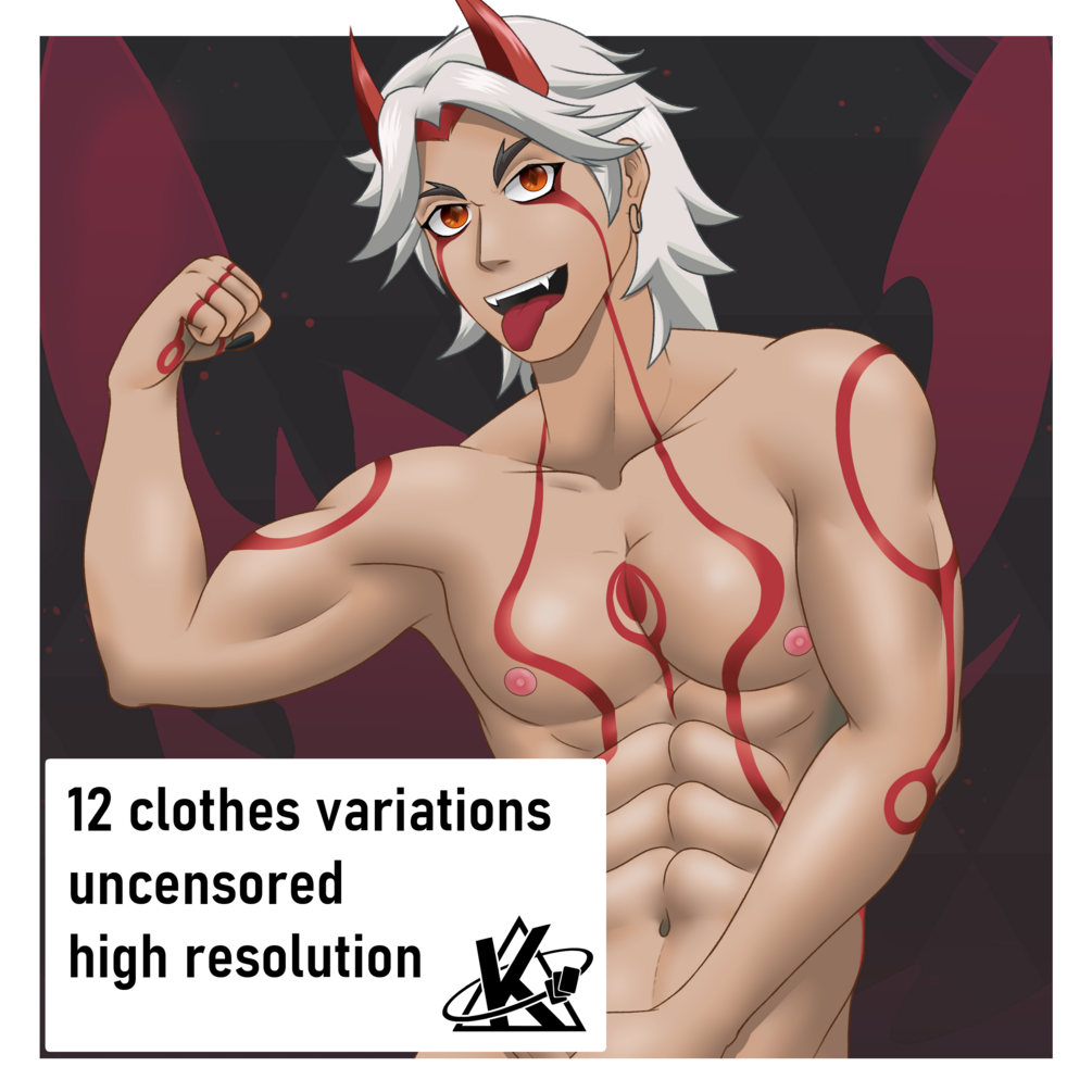 Pack of 8 images of variations of the clothes, body hair. (with and without clothes/bodyhair)